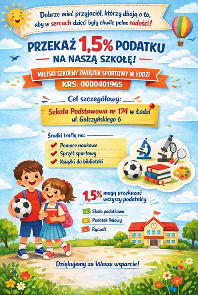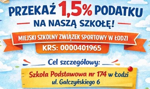 zwracamy się do Was z serdeczną prośbą o wsparcie naszej szkoły poprzez przekazanie 1,5% podatku za 2025 rok.