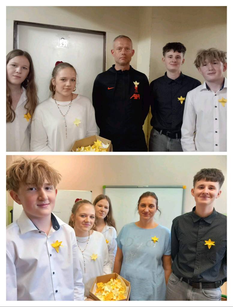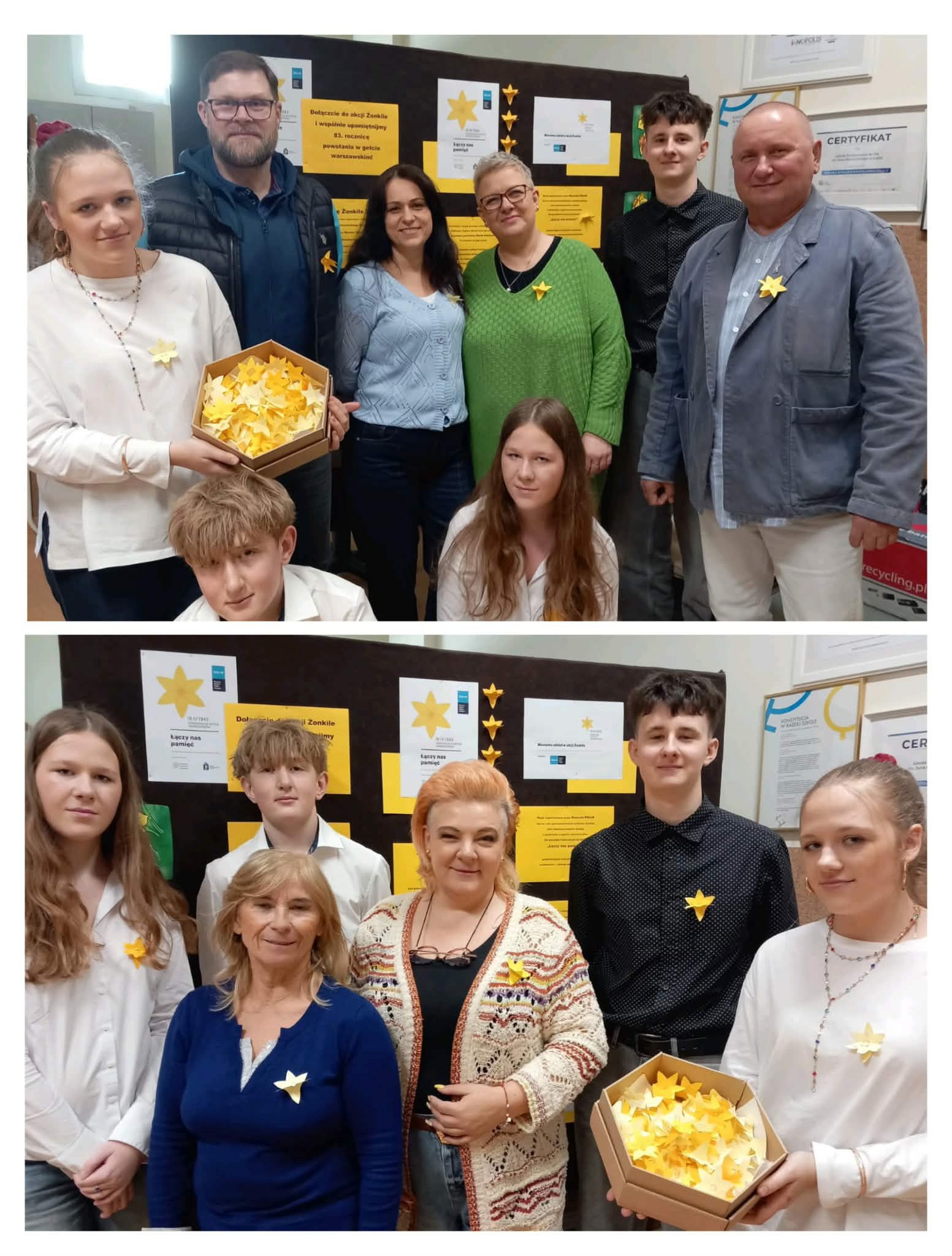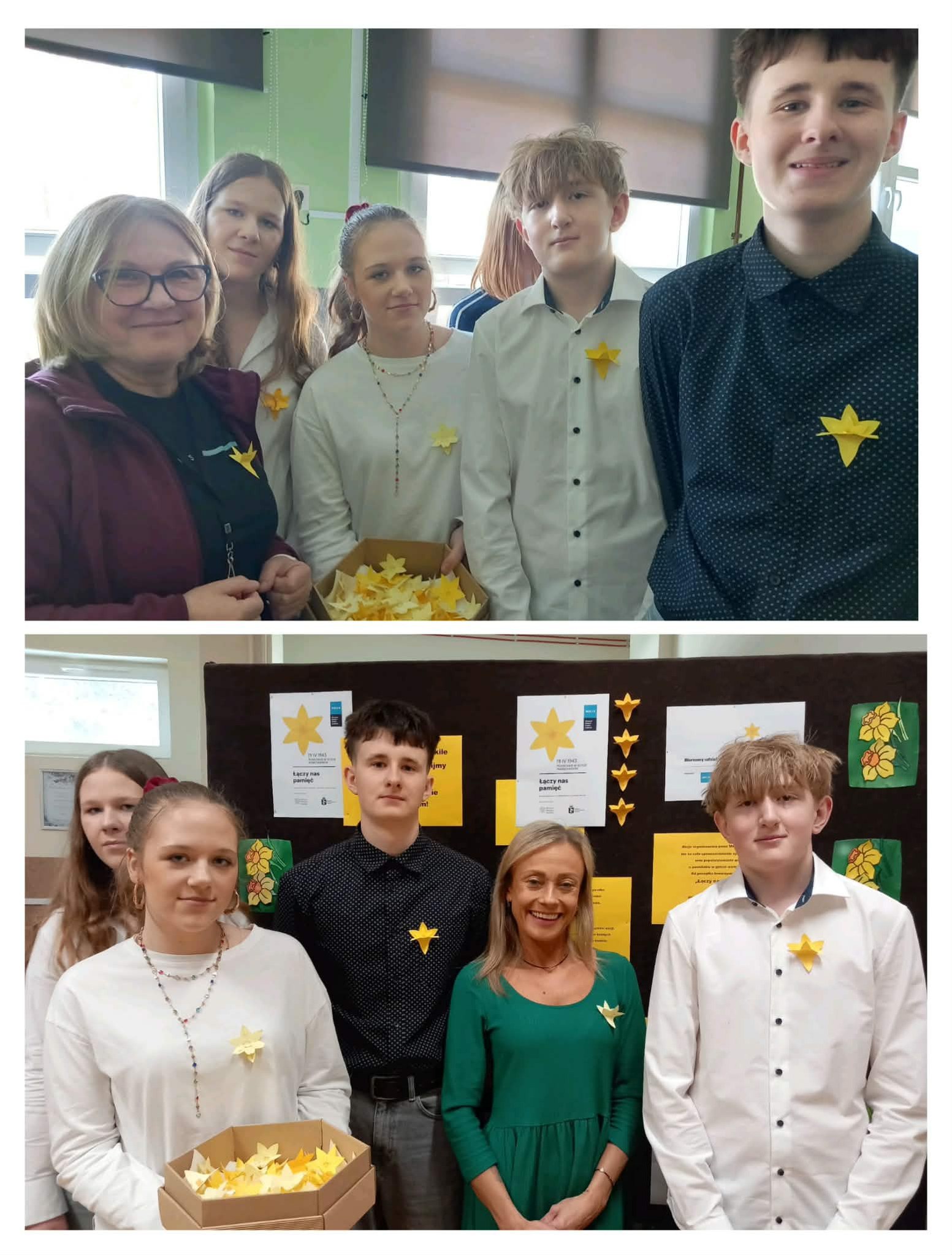 Nasi uczniowie z dużym zaangażowaniem wykonali papierowe żonkile, które ozdobiły szkolne gazetki, a także zostały rozdane uczniom i nauczycielom jako symbol pamięci. W ramach akcji uczniowie uczestniczyli w lekcjach przygotowanych według scenariuszy Muzeum Historii Żydów Polskich, oglądali filmy edukacyjne („Nie było żadnej nadziei”, „Historie nietuzinkowych postaci – Irena Sendlerowa i Jadwiga Piotrowska”, „W ukryciu. Historie Ocalałych i Sprawiedliwych”, „Zdążyć przed Panem Bogiem”) oraz czytali poruszające fragmenty wspomnień. Była to ważna lekcja historii, refleksji i empatii. Jedna z klas w ramach lektury uzupełniającej wybrała książkę Pawła Beręsewicza „Czy wojna jest dla dziewczyn?” z serii „Wojny dorosłych – historie dzieci”, dzięki której uczniowie poznali prawdziwą historię wojny widzianą oczami dziesięcioletniej Eli Łaniewskiej. Dziękujemy wszystkim za zaangażowanie i wspólne pielęgnowanie pamięci.