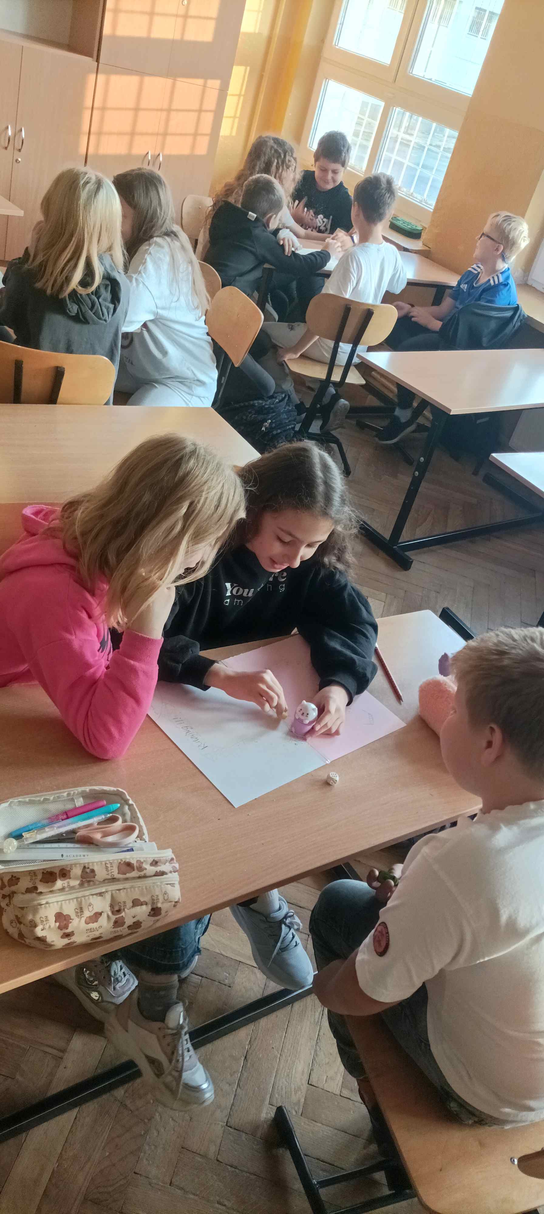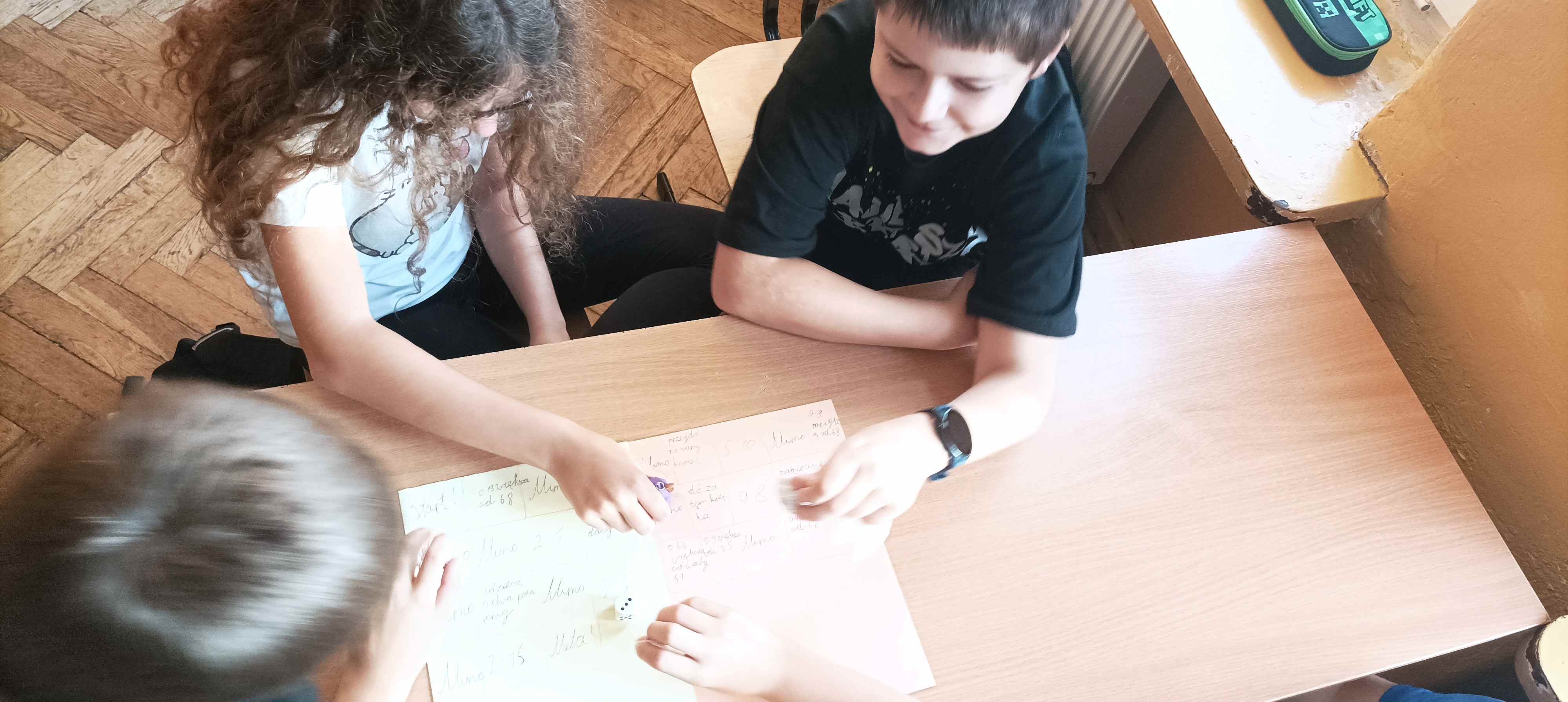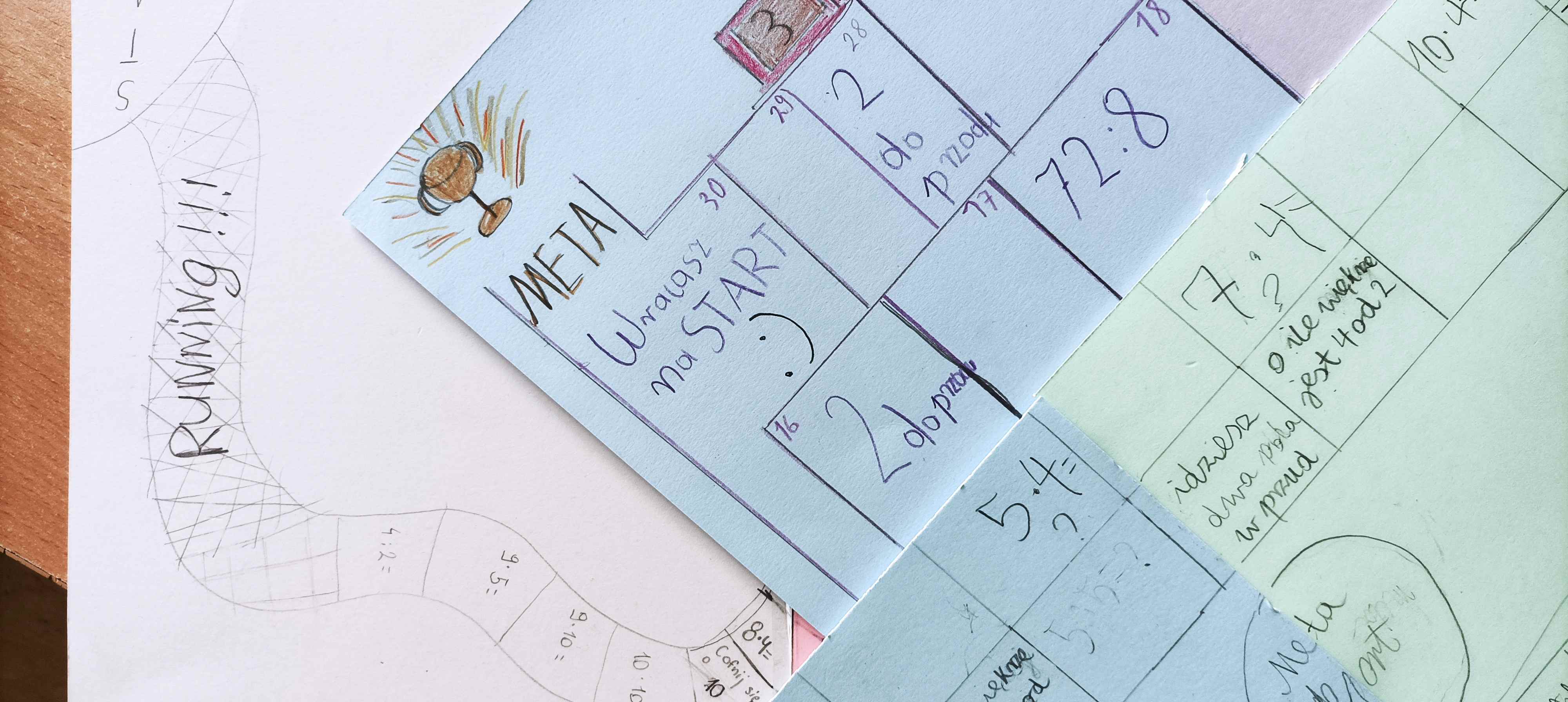 Na dzisiejszych zajęciach matematyki uczniowie klasy 4b pracowali w grupach, tworząc własne gry planszowe. Zadaniem było wykorzystanie zagadnień takich jak: tabliczka mnożenia, „o ile więcej”, „o ile mniej”, „ile razy więcej” oraz „ile razy mniej”. Każda grupa zaprojektowała planszę, opracowała pytania i zasady gry. Uczniowie dodali również pola specjalne według własnych pomysłów, np. „czekasz kolejkę”, „wracasz na start” czy „przesuwasz się na inne pole”. Dzięki temu nauka matematyki stała się kreatywną i angażującą zabawą!