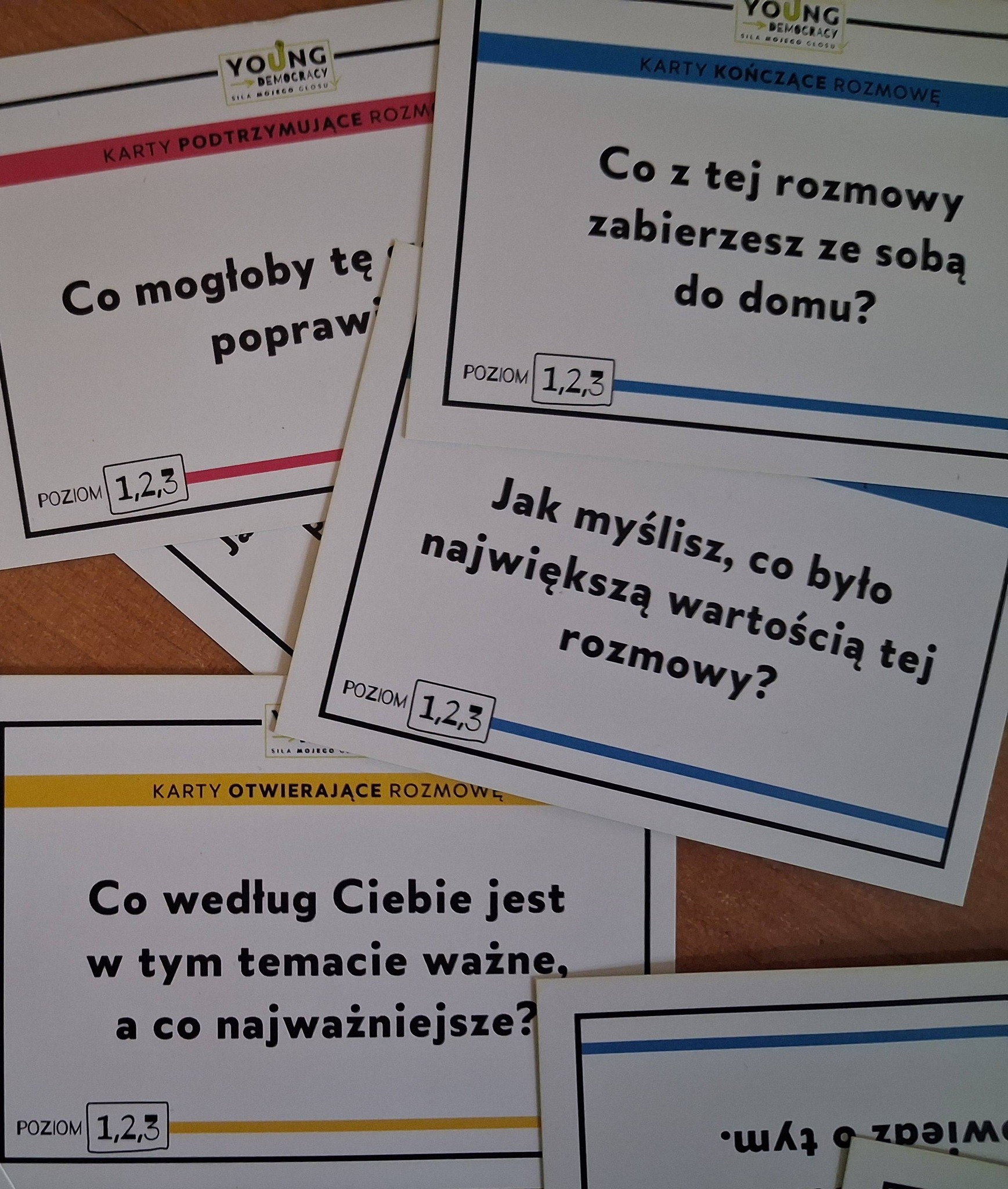 W klasie 7b odbyły się warsztaty poświęcone problemowi hejtu. Podczas zajęć uczniowie korzystali z kart dialogowych opracowanych w ramach projektu „Young Democracy – Siła mojego głosu”, realizowanego przez EduKABE Fundacja Kreatywnych Rozwiązań. Uczniowie rozwijali umiejętność uważnego słuchania oraz prowadzenia rozmów w duchu wzajemnego szacunku. Poruszane były również trudne, ale ważne dla młodych ludzi tematy. Warsztaty podkreśliły również, jak ważny jest głos młodych ludzi, że ich opinie mają znaczenie i są dostrzegane oraz wysłuchiwane przez dorosłych.