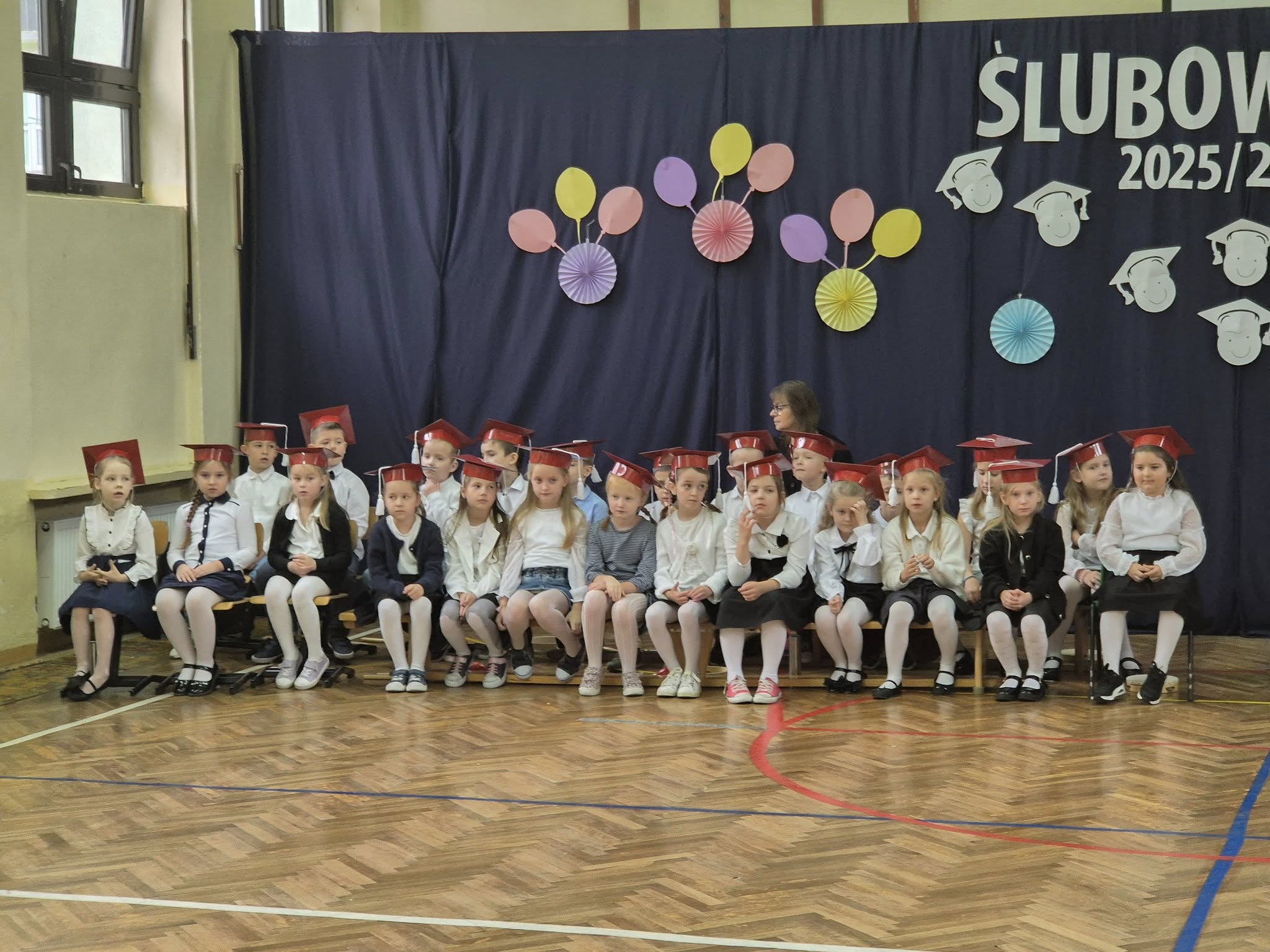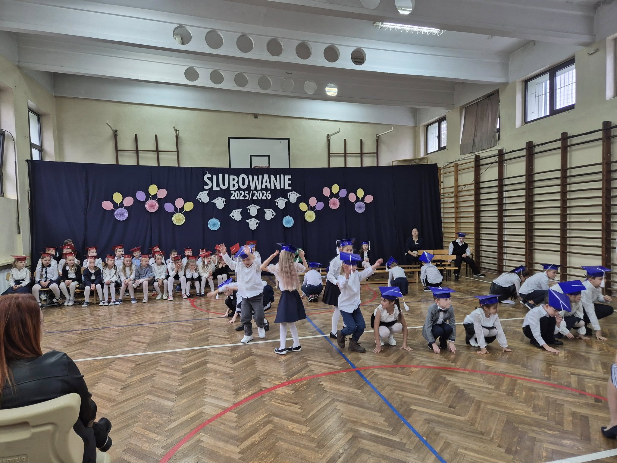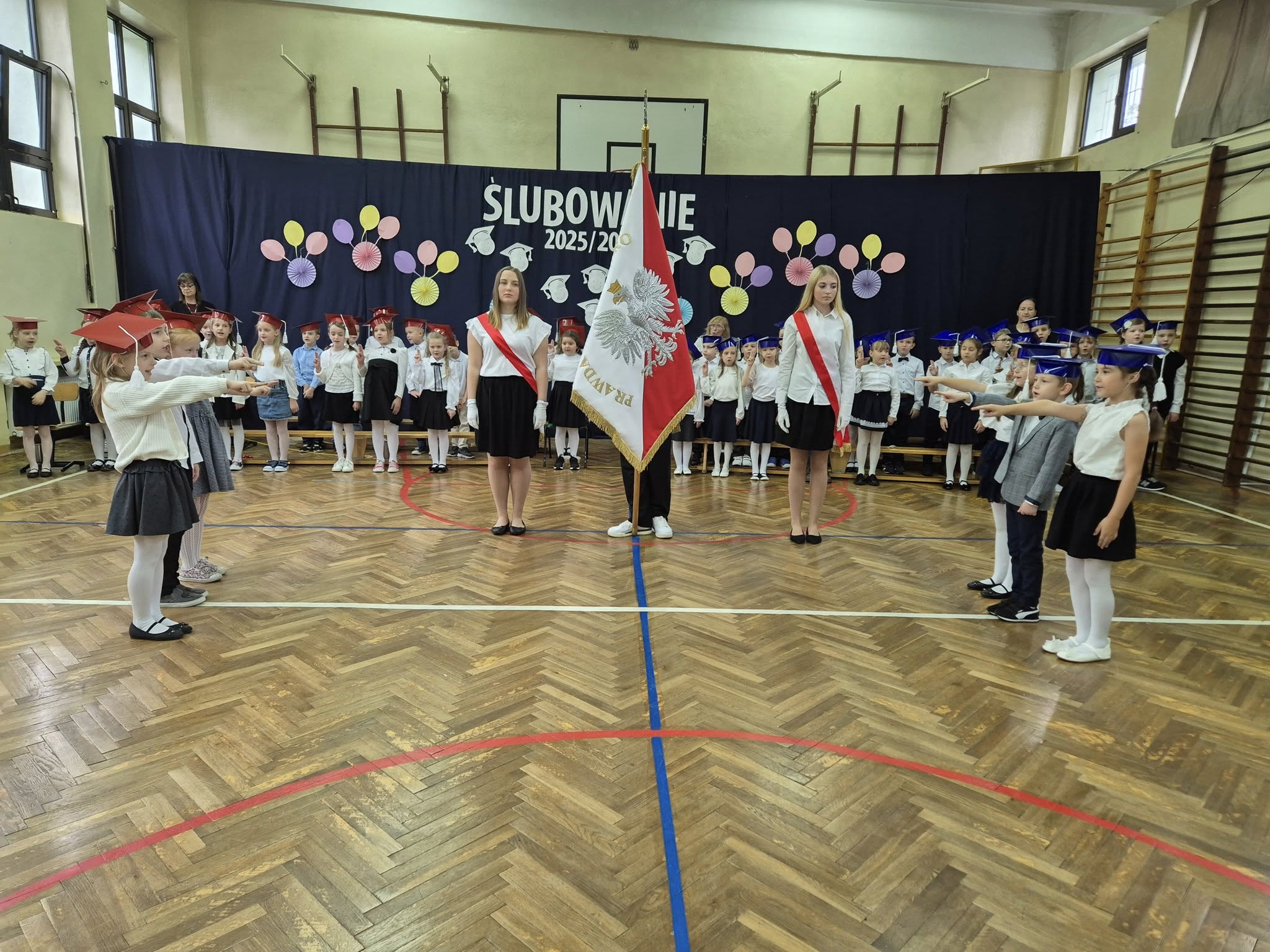 14 października w naszej szkole odbyło się uroczyste Ślubowanie i pasowanie na ucznia klasy pierwszej. W uroczystościach wzięła udział cała społeczność szkolna, którą przywitała Pani Dyrektor Beata Rubinkowska. Następnie pierwszoklasiści przedstawili część artystyczną, na którą składały się wiersze,piosenki, tańce oraz gra na instrumentach. Po występie odśpiewano hymn państwowy i hymn szkoły. Pierwszaki w pięknych biretach na głowach w podniosłej atmosferze przed pocztem sztandarowym ślubowali być dobrymi Polakami, godnie reprezentować swoją szkołę, oraz swym zachowaniem i nauką sprawiać radość rodzicom i nauczycielom. Po złożeniu Ślubowania Panie dyrektor; Beata Rubinkowska i Pani Anna Kordas, kolorowym ołówkiem dokonały symbolicznego aktu pasowania na ucznia. Po burzy oklasków pierwszoklasiści wrócili do klasy, gdzie czekały na nich słodkości przygotowane przez rodziców. Uroczysty dzień zakończyły pamiątkowe zdjęcia.