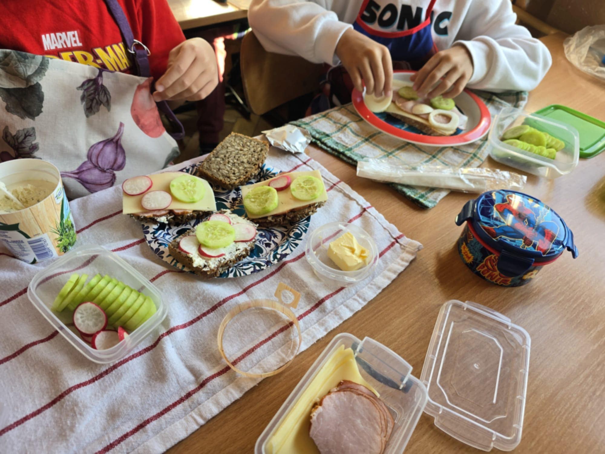 W piątkowe przedpołudnie w klasie 2b noże poszły w ruch ( oczywiście plastikowe), warzywa zatańczyły na kanapkach, a zdrowie samo wskoczyło na talerz! W ramach projektu " Moc zdrowia" uczniowie przygotowali kolorowe, zdrowe i ....zaskakująco pyszne kanapki! Niektórzy odkryli, że pomidor to jednak nie wróg, a szczypiorek da się zjeść beż marudzenia! Brawa dla naszych małych Kucharzy - MasterChef Junior może się schować!