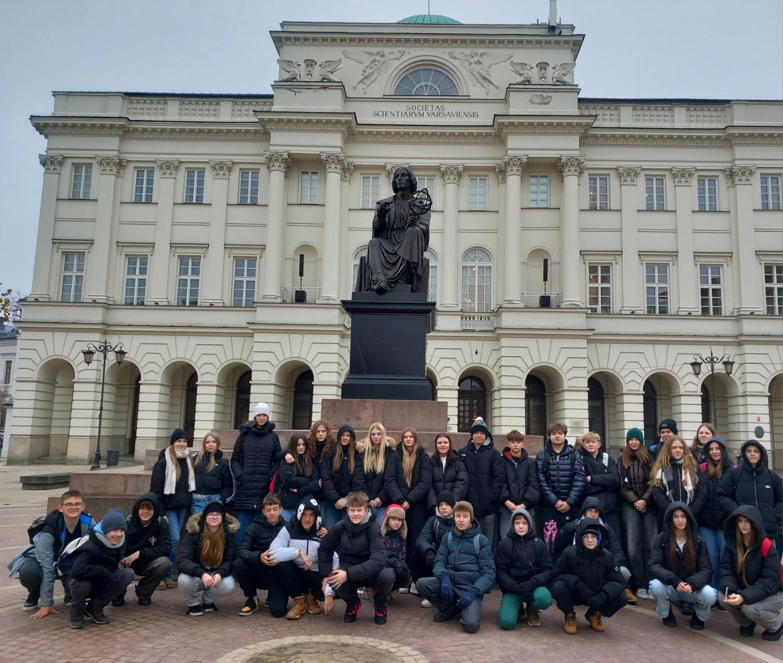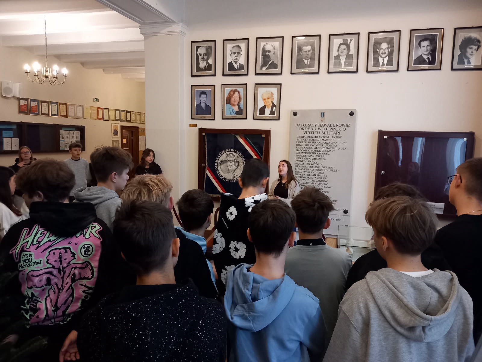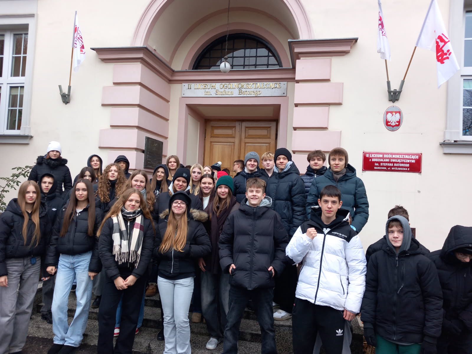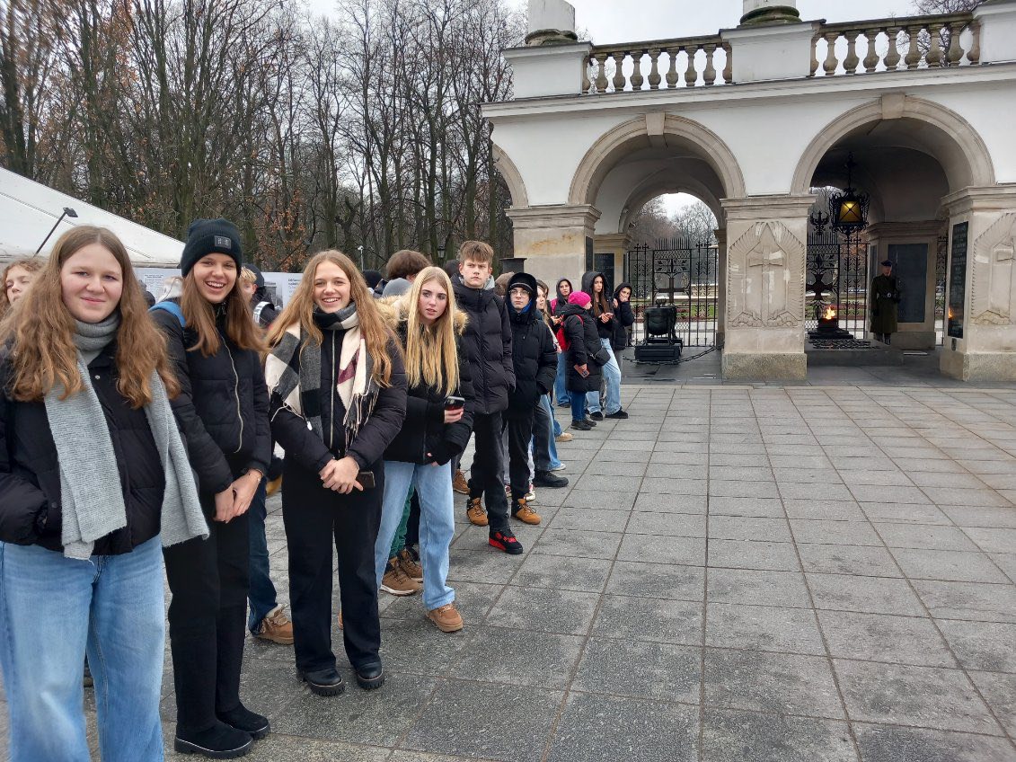 Uczniowie klas 8b i 8c wyruszyli do Warszawy, by przeżyć niezwykłą lekcję historii po lekturze książki Aleksandra Kamińskiego. Naszym celem było odnalezienie miejsc, w których żyli, działali i walczyli bohaterowie "Kamieni na szaniec”. Pierwszym przystankiem było słynne Liceum im. Stefana Batorego, do którego uczęszczali Alek, Rudy i Zośka. Odwiedziliśmy także szkolne muzeum, poznając ich młodzieńcze lata i harcerską codzienność. Następnie udaliśmy się do Mauzoleum Walki i Męczeństwa, pod pomnik Mikołaja Kopernika oraz Plac Marszałka Józefa Piłsudskiego, gdzie obserwowaliśmy uroczystą zmianę warty przy Grobie Nieznanego Żołnierza. Przeszliśmy także ulicą Długą, w okolice Arsenału-miejsca słynnej, brawurowej akcji odbicia Rudego. Poznaliśmy poruszające losy więźniów w Muzeum Więzienia Pawiak. Ostatnim etapem wyprawy był Cmentarz Wojskowy na Powązkach, gdzie uczniowie oddali hołd Krzysztofowi Kamilowi Baczyńskiemu, Aleksandrowi Kamińskiemu, Zośce, Rudemu, Alkowi oraz wszystkim bohaterom polskiego podziemia. Był to dzień pełen refleksji, wzruszeń i żywej lekcji patriotyzmu. Nasi uczniowie mogli zobaczyć, jak historia literacka splata się z realnymi miejscami i losami młodych ludzi, którzy nie wahali się stanąć w obronie wolności.