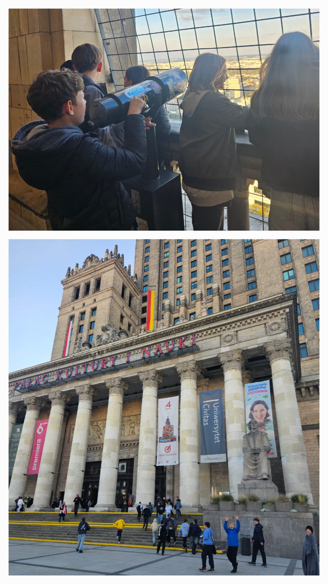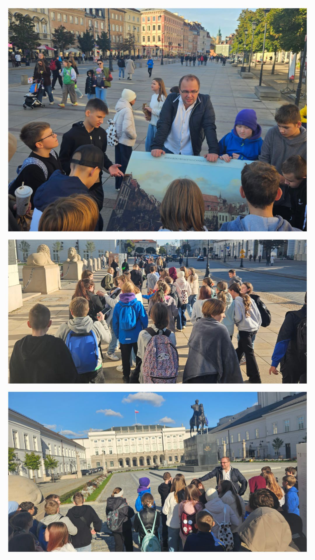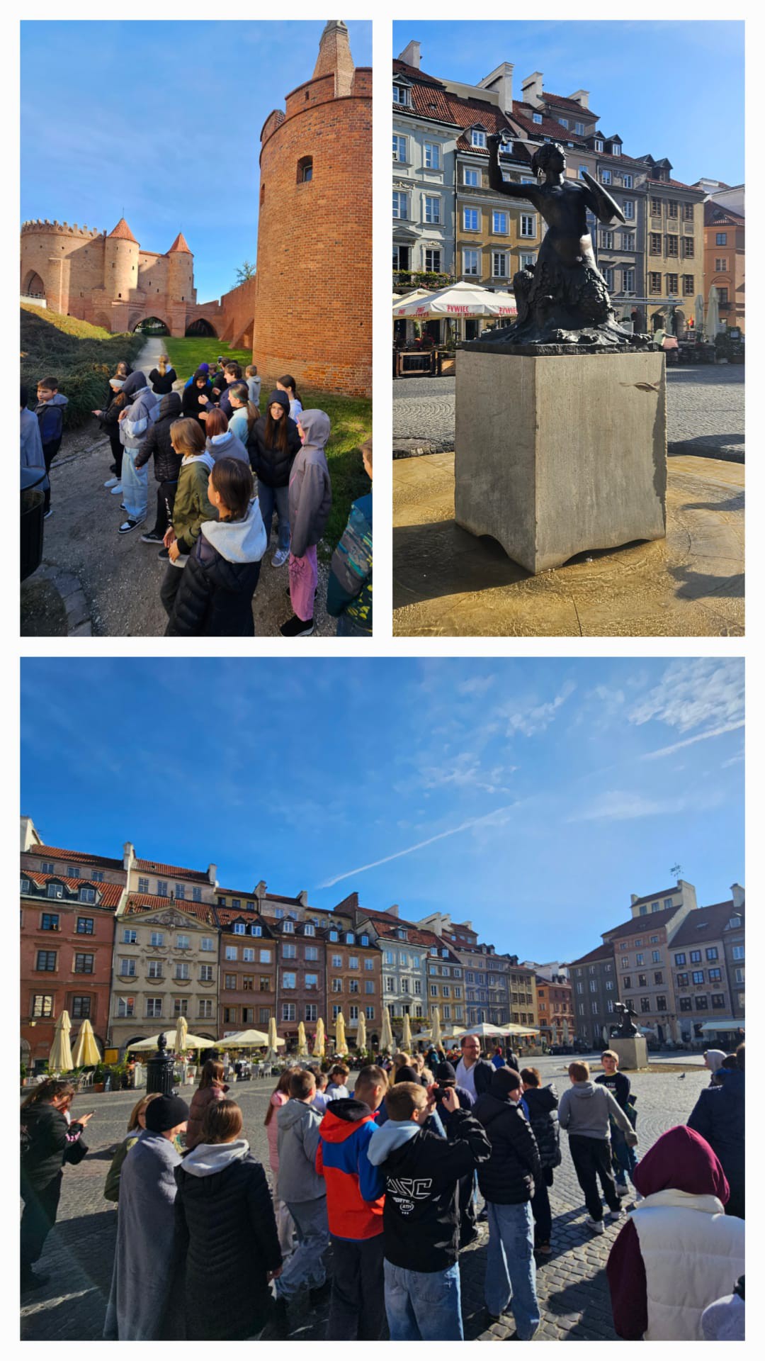W dniu 2 października uczniowie klas 6a i 6c wyruszyli w pełną wrażeń wycieczkę do stolicy Polski. Warszawa przywitała nas piękną, słoneczną pogodą. Każde z odwiedzanych miejsc uchylało przed uczniami rąbek tajemnicy i historycznych ciekawostek ukazując wartość dziedzictwa kulturowego i historycznego stolicy Polski. Ku refleksji i zadumie skłoniły Pomnik Powstania Warszawskiego oraz Pomnik Małego Powstańca upamiętniający najmłodszych uczestników Powstania Warszawskiego. Po przejściu przez Barbakan, wędrując uliczkami Starego Miasta, uczniowie mijali zabytkowe kamienice oraz wysłuchali legendy związanej z pomnikiem strażniczki miasta - Syrenki Warszawskiej. W pierwszej części wycieczki uczniowie zwiedzili również Stadion PGE Narodowy przechodząc trasą "Piłkarskie emocje" odwiedzili, m.in. strefę zawodniczą, szatnię reprezentacji Polski, pomieszczenia odnowy biologicznej, press room, punkt widokowy i poznali wiele stadionowych ciekawostek. Po przerwie obiadowej rozpoczęła się druga część spaceru po Starym Rynku w Warszawie dopełniona przejściem pod Pałac Prezydencki i obserwacją zmiany warty przy Grobie Nieznanego Żołnierza na placu marsz. J. Piłsudskiego. Zwieńczeniem była panorama Warszawy, którą uczniowie mogli zobaczyć z 30. piętra Pałacu Kultury i Nauki. To była niezwykła wycieczka prowadząca trasą, która jak podróż w czasie łączyła przeszłość i teraźniejszość miasta, ukazała jego wielofunkcyjność, walory historyczne i kulturowe oraz niezapomniana integracja dwóch zespołów klasowych pełna pozytywnych emocji i śmiechu.